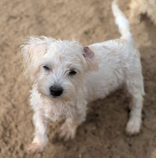 Er ist gut mit Hündinnen verträglich, die Einschätzung seiner Verträglichkeit mit Rüden wird noch vorgenommen.