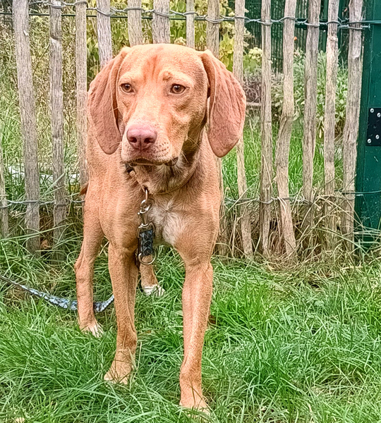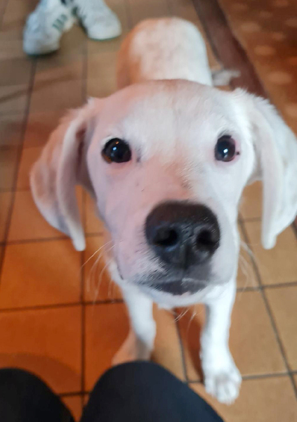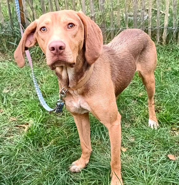Pim ist ein ca. 1,5 Jahre junger, liebenswerter und lebhafter Bracken-Mischlingsrüde. Hat er erst einmal Vertrauen gefasst, zeigt er seine fröhliche, verspielte Seite.