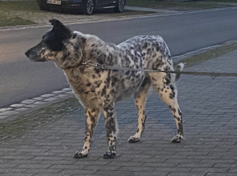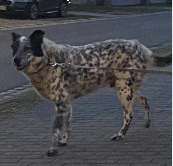 Ich möchten Ihnen Blacky vorstellen, einen Australian Cattle Dog Mix, ca. 9 Jahre alt, 50–60 cm groß, der ein neues Zuhause sucht.