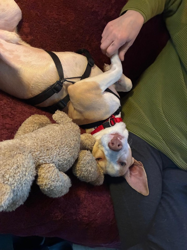mir spielen wollen, weil ich noch so ungestüm bin. Ich übe aber täglich mit meiner Mitbewohnerin Lucy, einer Mischlingsdame, die auch in meiner Pflegefamilie lebt.